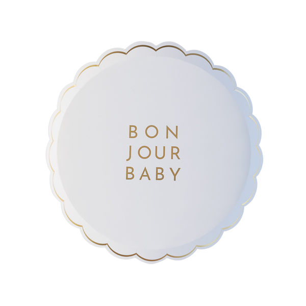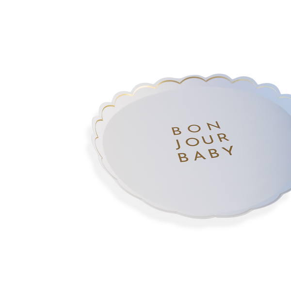 Platos Blancos Scalloped Bonjour Baby Dorado 8pz